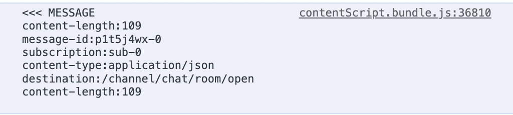 client.current.subscribe의 첫 번째 인자는 구독하는 소켓의 destination을 입력해준다. 위의 경우, 클라이언트가 정의를 해주어야 하기 때문에, 변수를 할당하였고 클라이언트 측에서 보내주는 예시는 다음과 같다.